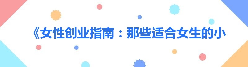 《女性创业指南:那些适合女生的小生意》