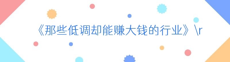 《那些低调却能赚大钱的行业》