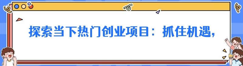 探索当下热门创业项目:抓住机遇,开启成功之旅