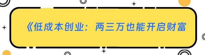 《低成本创业:两三万也能开启财富之路》