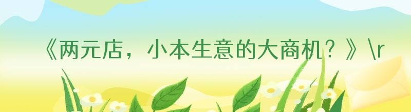 《两元店,小本生意的大商机?》