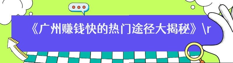 《广州赚钱快的热门途径大揭秘》