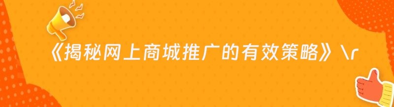《揭秘网上商城推广的有效策略》