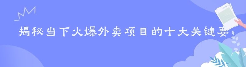 在餐饮行业的广阔天地中,外卖项目如同一颗璀璨的明星,闪耀着耀眼的光芒。它以其便捷、高效的特点,迅速俘获了广大消费者的心,成为了人们日常生活中不可或缺的一部分。那么,究竟是什么让外卖项目如此火爆呢?接下来,就让我们一起深入探究,揭秘当下火爆外卖项目的十大关键要点。