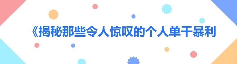 《揭秘那些令人惊叹的个人单干暴利项目》