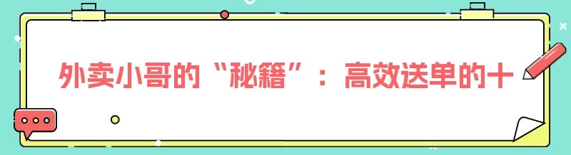 外卖小哥的“秘籍”:高效送单的十大技巧