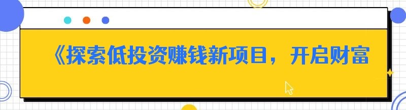 《探索低投资赚钱新项目,开启财富增长新旅程》