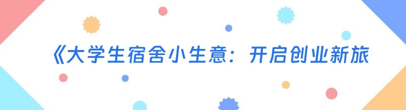 《大学生宿舍小生意:开启创业新旅程》