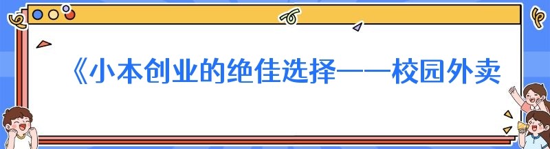 《小本创业的绝佳选择——校园外卖与跑腿服务》