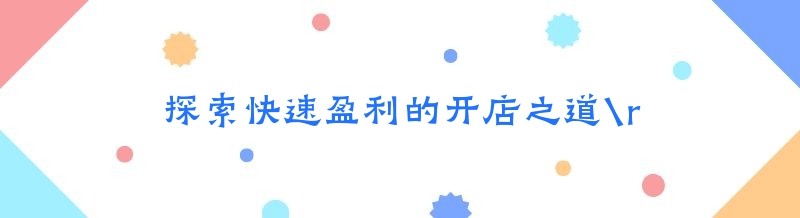 探索快速盈利的开店之道