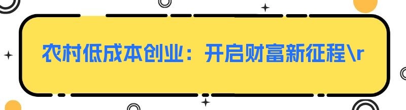 农村低成本创业:开启财富新征程