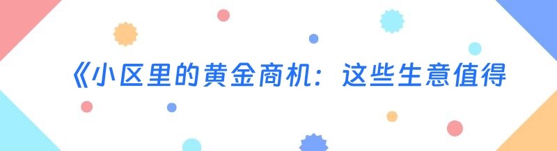 《小区里的黄金商机:这些生意值得一试》