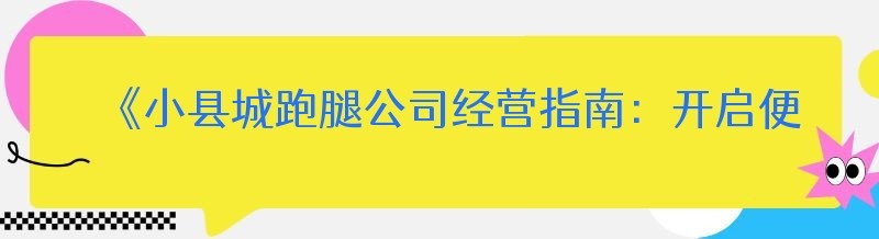 《小县城跑腿公司经营指南:开启便捷生活新时代》