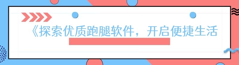 《探索优质跑腿软件,开启便捷生活之旅》
