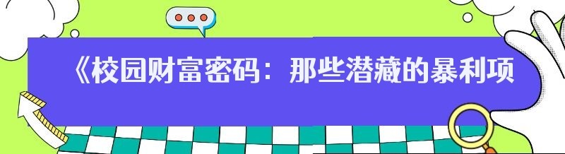 在校园这片充满活力与机遇的土地上,隐藏着许多能够挣学生钱的暴利项目。这些项目不仅能够满足学生们的需求,还能为创业者带来可观的收益。接下来,让我们一同揭开这些项目的神秘面纱,探寻其中的财富奥秘。
