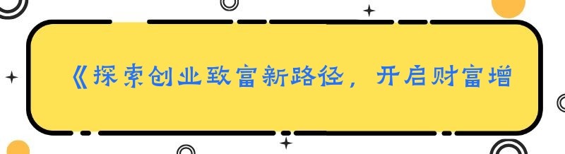 《探索创业致富新路径,开启财富增长新旅程》