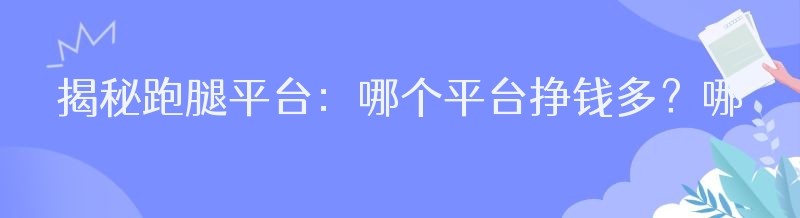 在当今社会,随着人们生活节奏的加快和消费需求的多样化,跑腿服务逐渐成为了一种热门的行业。越来越多的人选择加入跑腿大军,通过为他人提供各种便捷服务来赚取收入。然而,面对众多的跑腿平台,很多人都不知道该如何选择,哪个平台跑腿挣得多?哪个平台更好呢?本文将为您详细分析。