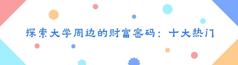 大学周边的商机无限,只要你有创意和想法,就能够找到适合自己的创业项目。如果你正在考虑在大学周边开店,不妨参考以上十大热门商机,选择一个适合自己的项目,开启你的创业之旅。