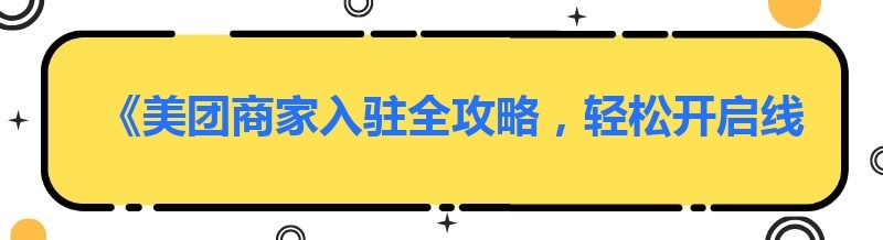 《美团商家入驻全攻略,轻松开启线上营业之旅》