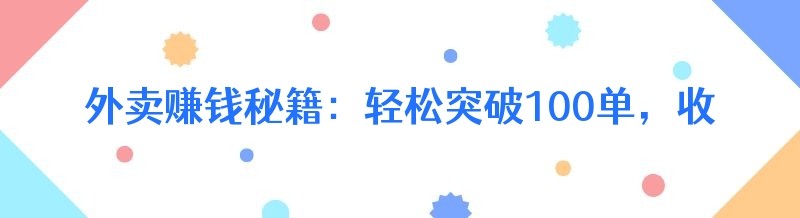 外卖赚钱秘籍:轻松突破100单,收入大揭秘!