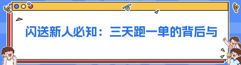 在如今的同城配送领域,闪送以其快速、高效的服务模式吸引了众多新人加入。然而,对于闪送新人来说,有一个常见的规定,那就是三天必须要跑一单。这一规定背后有着怎样的考量呢?同时,又为什么会有很多人在闪送干不下去呢?让我们一起来深入探讨。