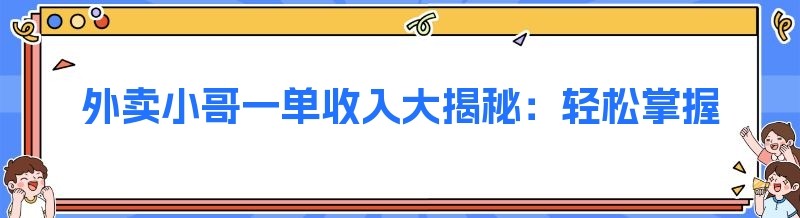 外卖小哥一单收入大揭秘:轻松掌握赚钱方法