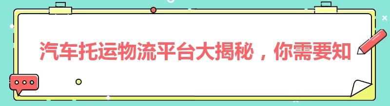 汽车托运物流平台大揭秘,你需要知道这些!
