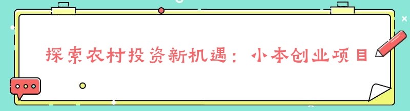 探索农村投资新机遇:小本创业项目全解析