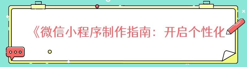 《微信小程序制作指南:开启个性化程序之旅》