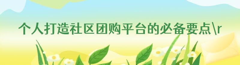 个人打造社区团购平台的必备要点