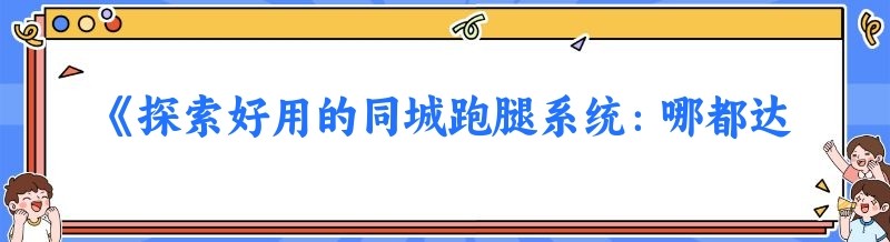 《探索好用的同城跑腿系统:哪都达的独特魅力》