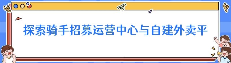 探索骑手招募运营中心与自建外卖平台的准备之路