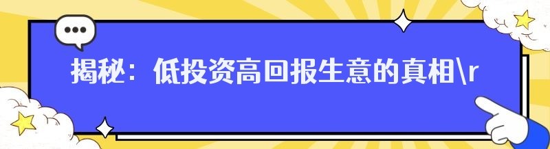 揭秘:低投资高回报生意的真相
