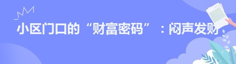 小区门口的“财富密码”:闷声发财的十个生意大揭秘