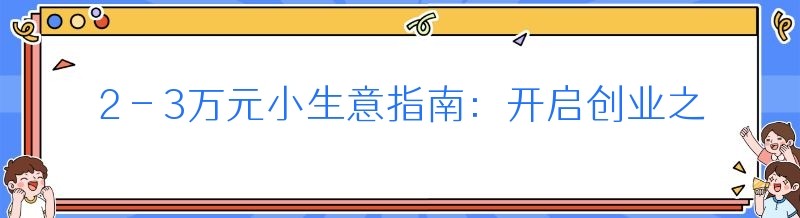 2 - 3万元小生意指南:开启创业之旅的绝佳选择