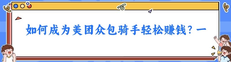 如何成为美团众包骑手轻松赚钱?一文带你快速了解!