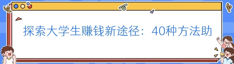 编辑 探索大学生赚钱新途径:40种方法助你轻松赚零花钱