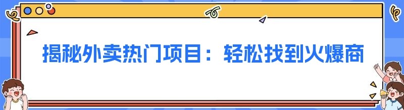 揭秘外卖热门项目:轻松找到火爆商机的秘籍
