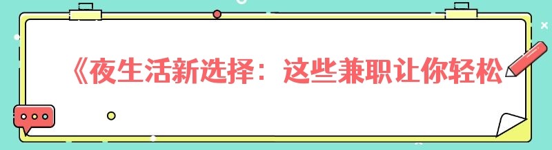 《夜生活新选择:这些兼职让你轻松赚钱》