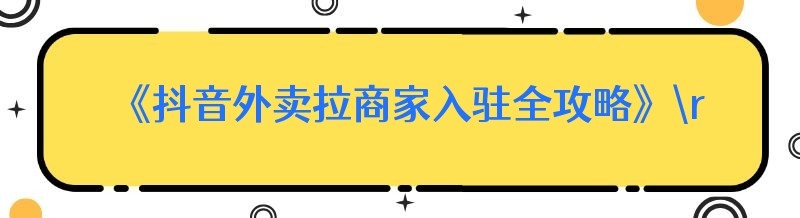 《抖音外卖拉商家入驻全攻略》