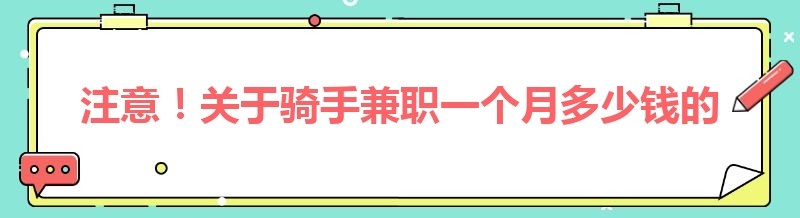 注意!关于骑手兼职一个月多少钱的新消息来了!