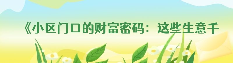 在日常生活中,我们常常会发现小区门口是一个人员流动较为密集的地方。这里不仅有小区居民的日常出入,还有周边居民和过往行人。那么,小区门口适合做什么生意呢?今天就来给大家详细介绍一下,让你轻松找到适合自己的创业项目!