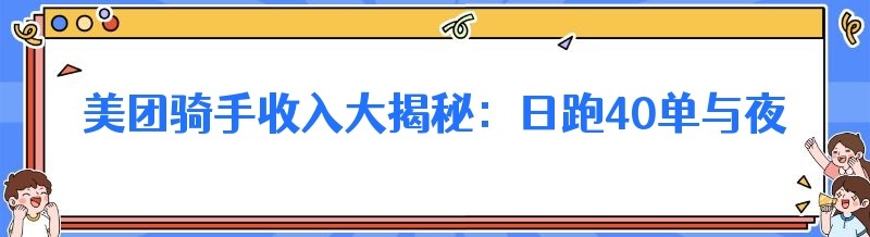 美团骑手收入大揭秘:日跑40单与夜间跑外卖的月收入情况