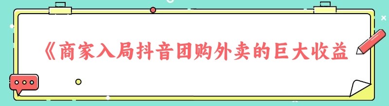 《商家入局抖音团购外卖的巨大收益,你不可不知!》