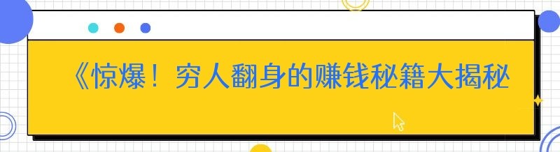 《惊爆!穷人翻身的赚钱秘籍大揭秘》