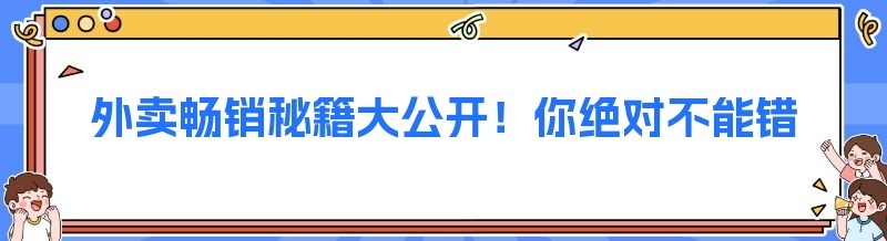 外卖畅销秘籍大公开!你绝对不能错过的超详细介绍