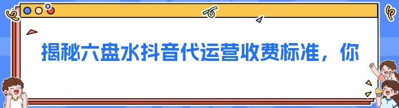 揭秘六盘水抖音代运营收费标准,你想知道的都在这里!