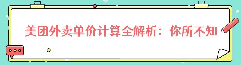美团外卖单价计算全解析:你所不知道的那些事儿