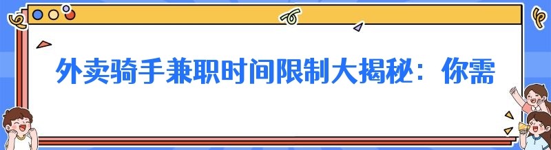 外卖骑手兼职时间限制大揭秘:你需要知道的那些事儿