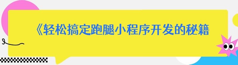 《轻松搞定跑腿小程序开发的秘籍大公开》